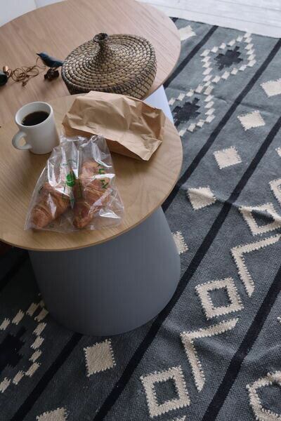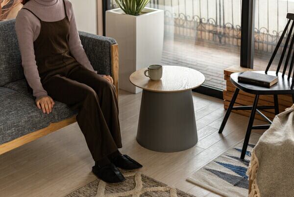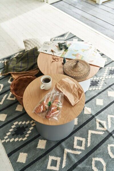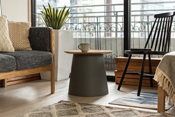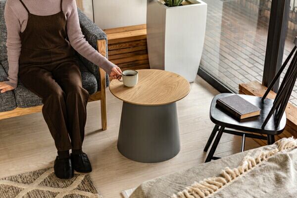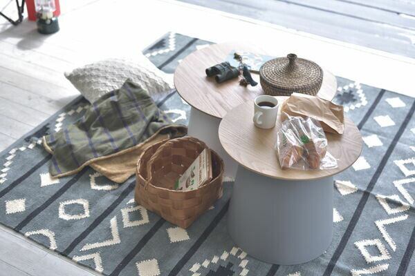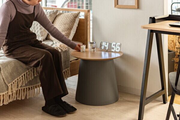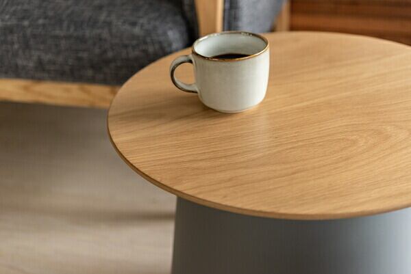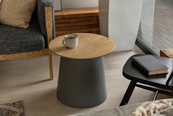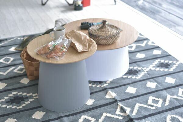 東谷 ラウンドテーブルS φ49×H42.5 ホワイト/ブラック 天然木化粧繊維板(オーク) ウレタン塗装 ポリプロピレン PT-990