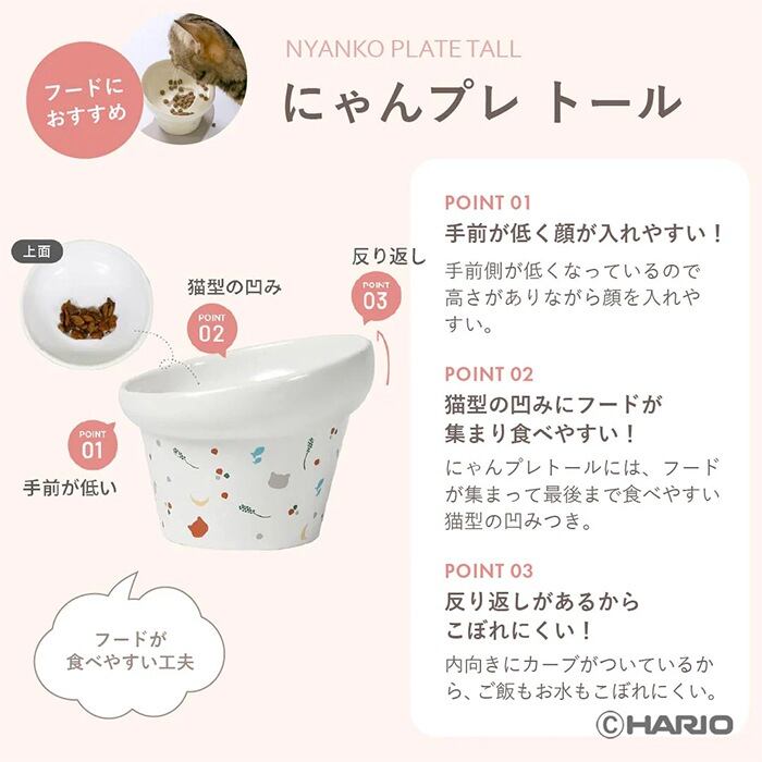 ハリオ HARIO にゃんプレトール 猫 お皿 フードボウル 食べやすい 高さがある おしゃれ 陶器 食器 餌入れ ペット 猫用食器 傾斜 斜め 猫皿 餌皿 ご飯台 餌台 食器台 エサ入れ 水 ねこ ネコ PTS-NYT
