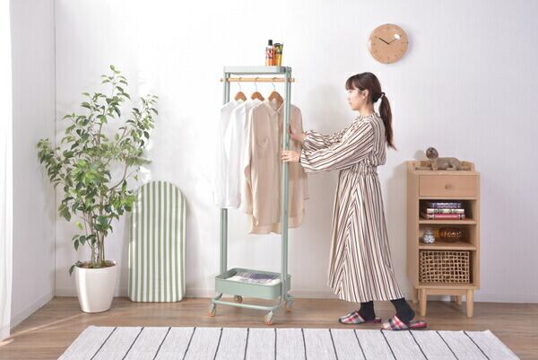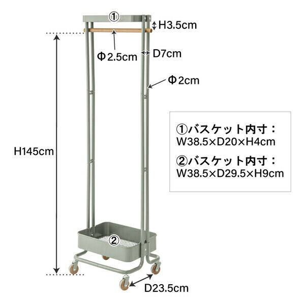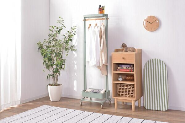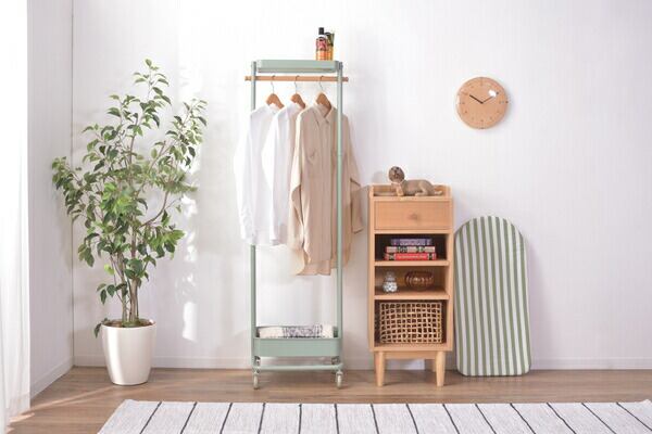 東谷 ハンガーワゴン W50×D36×H156 ホワイト/グリーン スチール(粉体塗装) 天然木(ビーチ) ラッカー塗装 PW-55