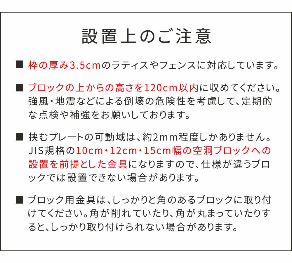 ※JIS規格の【10cm・12cm・15cm幅】の空洞ブロックへの設置を前提とした金具になります。ブロックの幅をよくご確認ください。