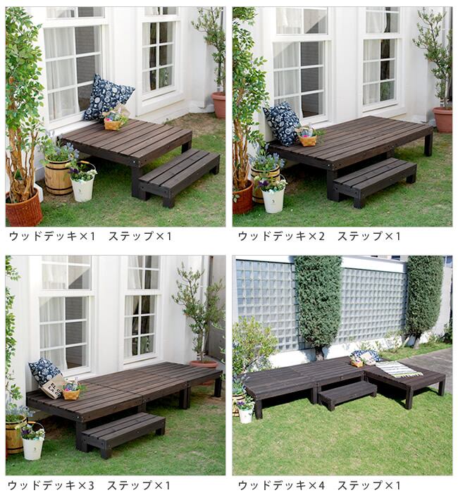 90×90cmのウッドデッキとステップの組み合わせで、デザインは無限大!
