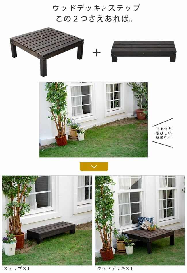■ユニットウッドデッキ 90×90 ステップ付 SDKIT9090STP-DBR