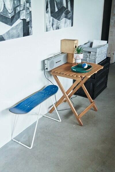 東谷 スケートボードスツール W81×D31×H50 ブルー/ブラック/ナチュラル SF-201