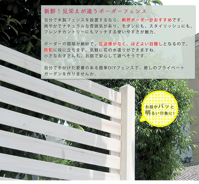 新鮮!見栄えが違うボーダーフェンス自分で木製フェンスを設置するなら、断然ボーダーがおすすめです。