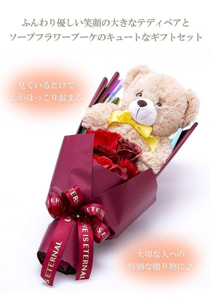 【送料無料】ソープフラワー ブーケ プレゼント テディベアブーケ くま ビッグブーケ 花束 ボックス付き 母の日 入学式 ギフト プレゼント 枯れない花 バラ ソープ フラワー 誕生日 お礼 お祝い 記念日 卒業式 退職祝い ホワイトデー 成人式 ピンク パープル SF-CW-4916