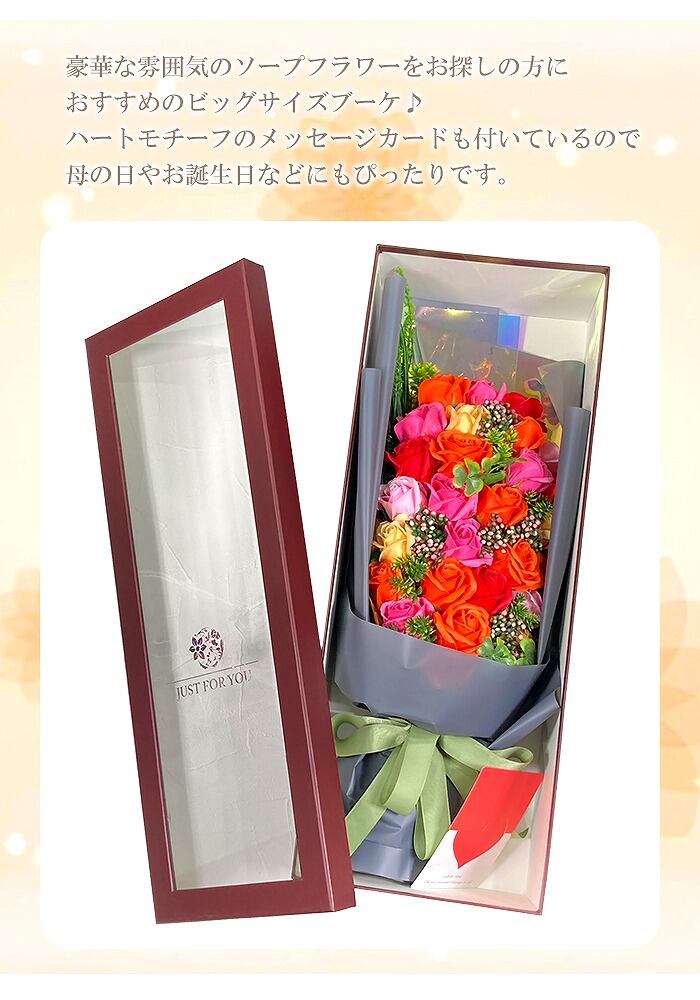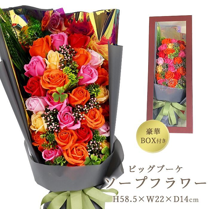 【送料無料】ソープフラワー ブーケ プレゼント カラーシャボンフラワーブーケ ビッグブーケ 花束 ボックス付き 母の日 敬老の日 ギフト プレゼント 枯れない花 バラ ソープ フラワー 誕生日 お礼 お祝い 記念日 卒業式 開店祝い 退職 SF-GM-3966