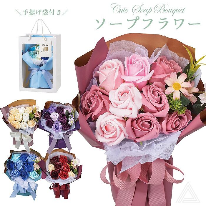 送料無料 ソープフラワー プレゼント 花 キュートシャボンブーケ 紙袋付き アンティークカラー 母の日 入学式 卒業式 ブーケ 花束 ソープ 誕生日 退職祝い フラワーギフト おしゃれ 可愛い ホワイトデー ピンク レッド ブルー パープル ベージュ SF-GM-4387