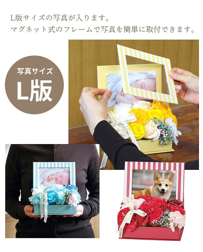 送料無料 プレゼント 花 ソープフラワー 写真立て シャボンストライプフォトフレーム お悔み お供え 卒業式 ブーケ 花束 ソープ 記念日 結婚 誕生日 母の日 プチギフト 退職祝い フラワーギフト おしゃれ 可愛い ホワイトデー ピンク レッド ブルー ペット SF-GM-4503
