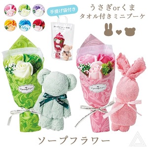 【商品名】ウサギ/クマ タオル&シャボンフラワーセット