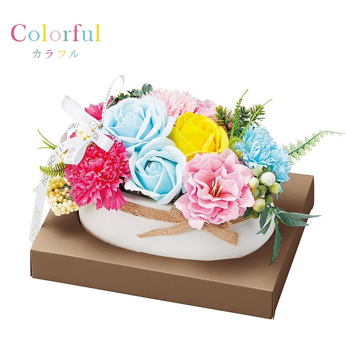 送料無料 プレゼント 花 ソープフラワー オーバル陶器シャボンアレンジ 卒業式 ソープ 記念日 結婚 誕生日 母の日 退職祝い お悔み お供え フラワーギフト おしゃれ 可愛い ホワイトデー バラ ピンク パープル レッド イエロー カラフル ペット SF-GM-4834