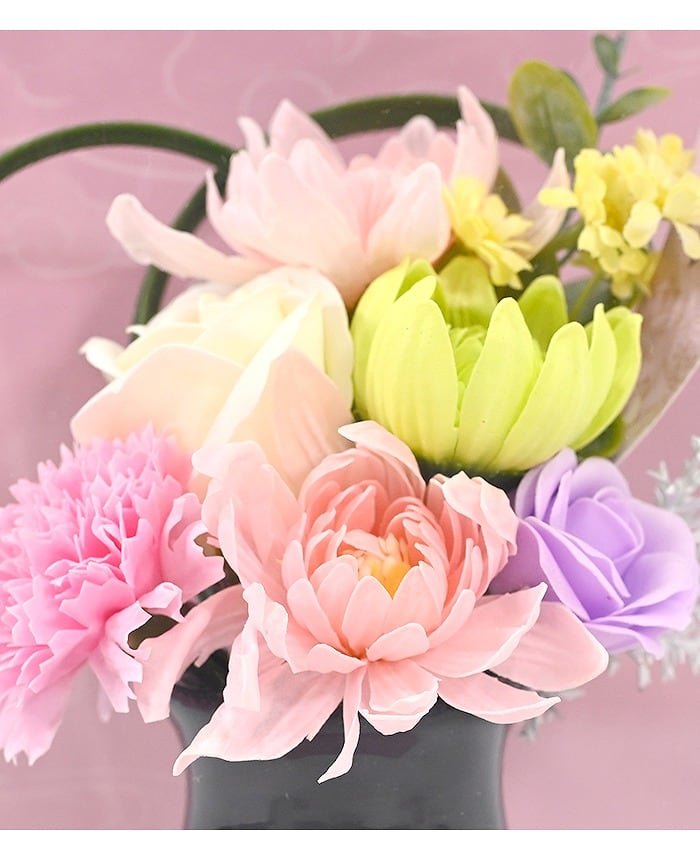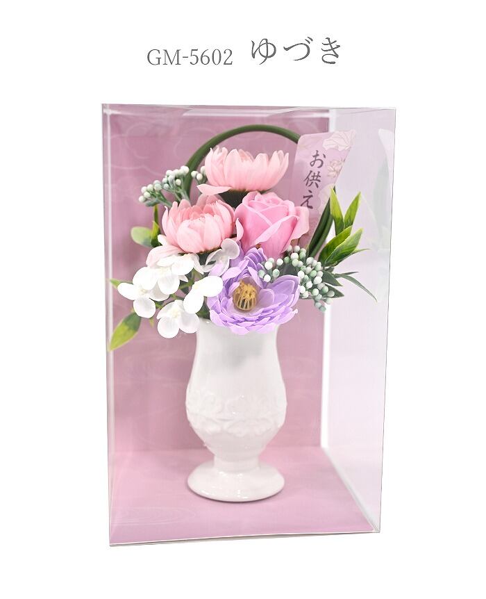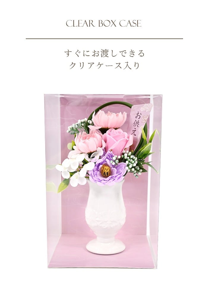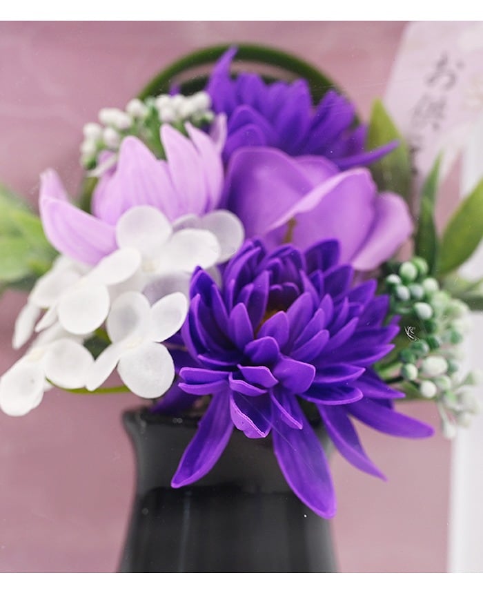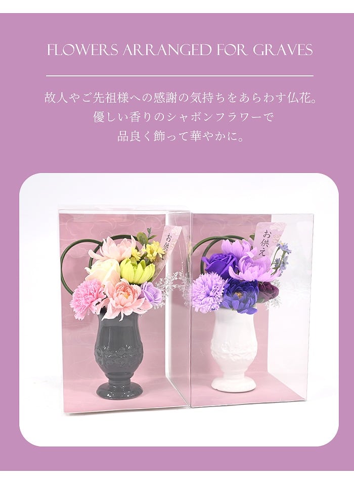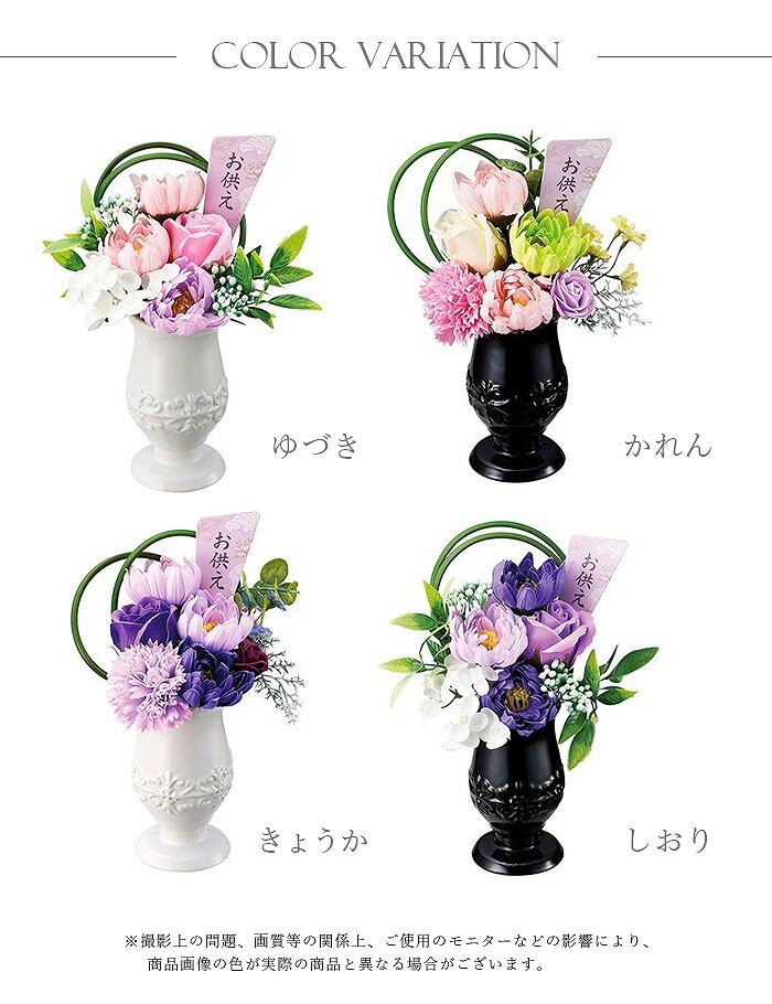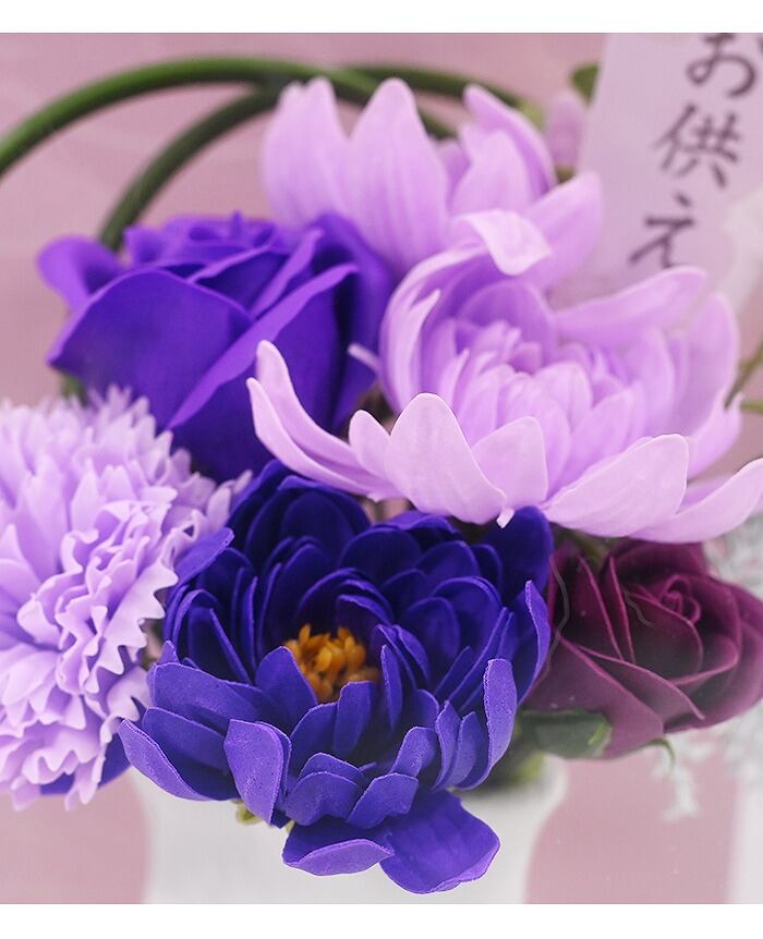 ソープフラワー 仏花 シャボンフラワー仏花 石鹸素材 枯れないお花 仏壇用 お供え お悔やみ 供花 お悔み 和風 仏壇 仏前 お盆 お彼岸 法事 故人 初盆 ゆづき かれん きょうか しおり パープル 紫 ピンク おしゃれ 送料無料 SF-GM-5602