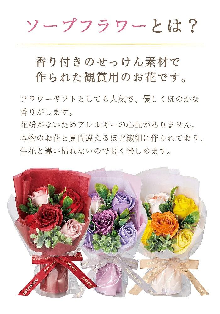 送料無料 プレゼント 花 ソープフラワー ブーケ 花束 5色 クリアボックス付き スイートシャボン5輪ブーケボックス ソープブーケ ミニブーケ 枯れない花 入学式 卒業式 誕生日 母の日 退職祝い フラワーギフト 可愛い バラ レッド ピンク ブルー SF-GM-5699