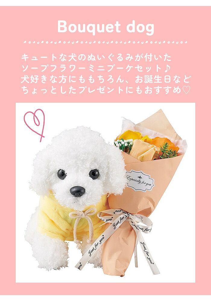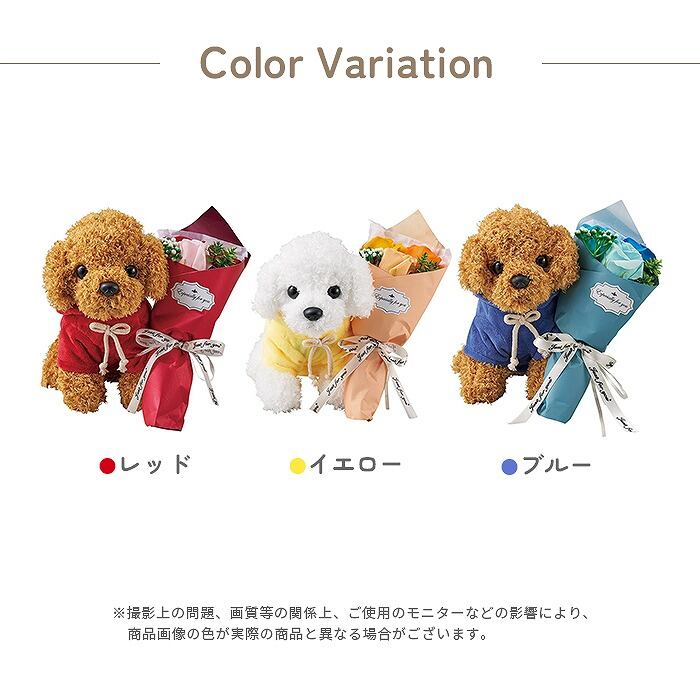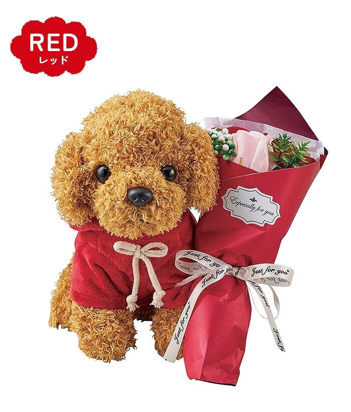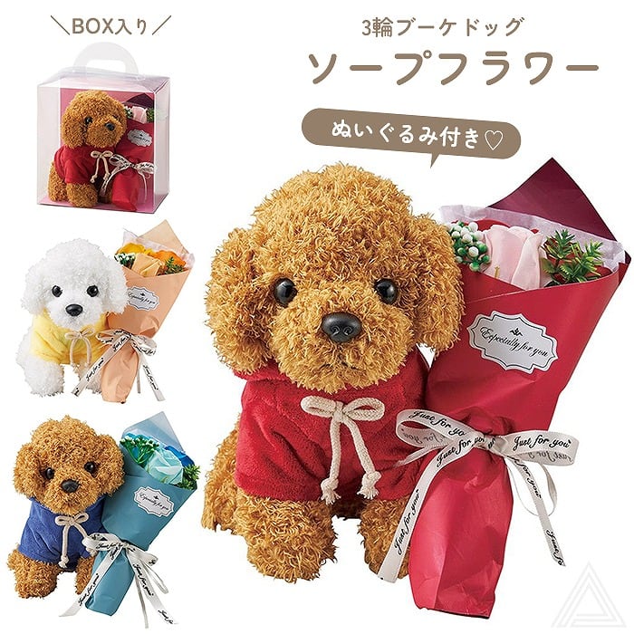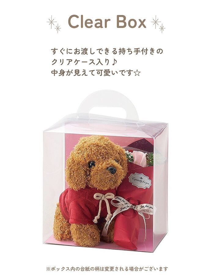 ソープフラワー プレゼント 花 3輪ブーケドッグ 犬 ぬいぐるみ クリアボックス入り トイプードル 入学式 卒業式 ブーケ 花束 ソープ 誕生日 母の日 退職祝い お供え お悔やみ おしゃれ 可愛い ホワイトデー レッド イエロー ブルー 送料無料 SF-GM-5746
