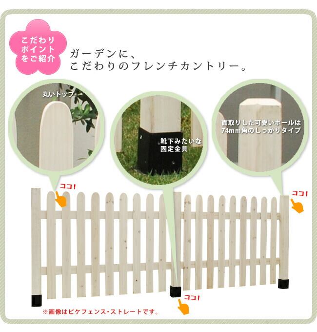 住まいスタイル ピケットフェンス U型 平地4連結セット 【送料無料 フェンス 木製フェンス ピケフェンス 天然木製 ガーデンフェンス ガーデニング 枠 柵 仕切り 目隠し 境目 クラシカル アンティーク トレリス ベランダ つる 薔薇 バラ 朝顔 園芸 ラティス】