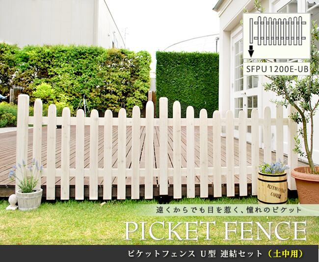 住まいスタイル ピケットフェンスU型連結セット(土中用)【送料無料 フェンス 木製フェンス ピケフェンス 天然木製 ガーデンフェンス ガーデニング 枠 柵 仕切り 目隠し 境目 クラシカル アンティーク トレリス ベランダ つる 薔薇 バラ 朝顔 園芸 ラティス】