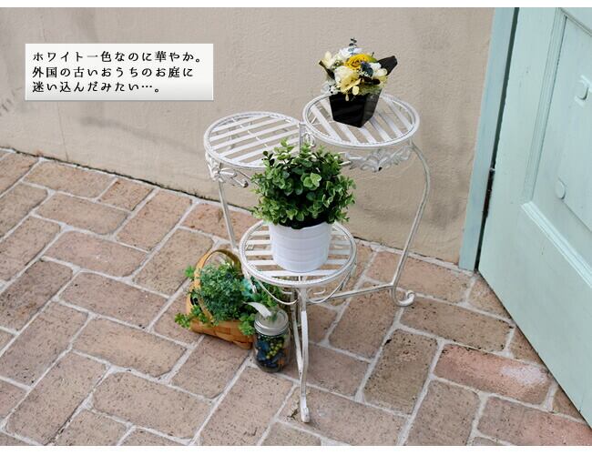 住まいスタイル ブランティーク ホワイトアイアンフラワースタンド 丸型【送料無料 アンティーク モダン スタイリッシュ シンプル フラワースタンド 花台 プランター ガーデン インテリア 家具 天然 おしゃれ カフェ 北欧】