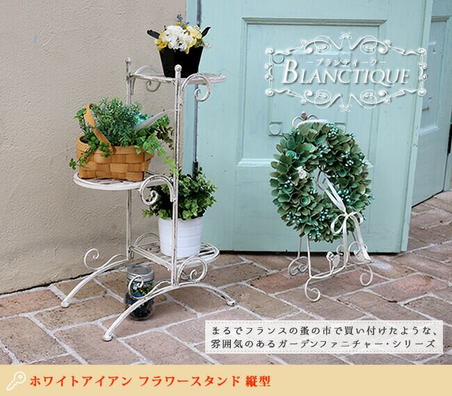住まいスタイル ブランティーク ホワイトアイアンフラワースタンド 縦型【送料無料 アンティーク モダン スタイリッシュ シンプル フラワースタンド 花台 プランター ガーデン インテリア 家具 天然 おしゃれ カフェ 北欧】