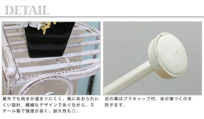 なじみやすい清潔感のあるオフホワイトと、気品あるシャビー感が絶妙にミックスされ、お庭やベランダ、バルコニーの雰囲気を味わい深いものにしてくれます。