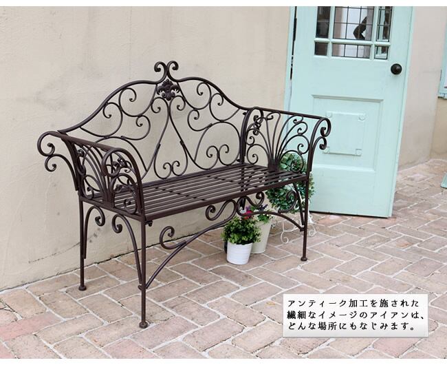 ■商品名 ブランティーク ホワイトアイアンベンチ136