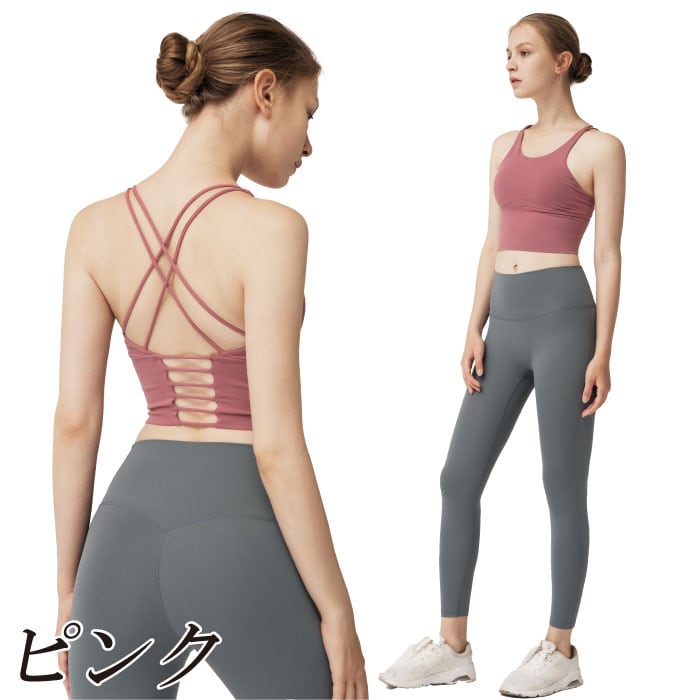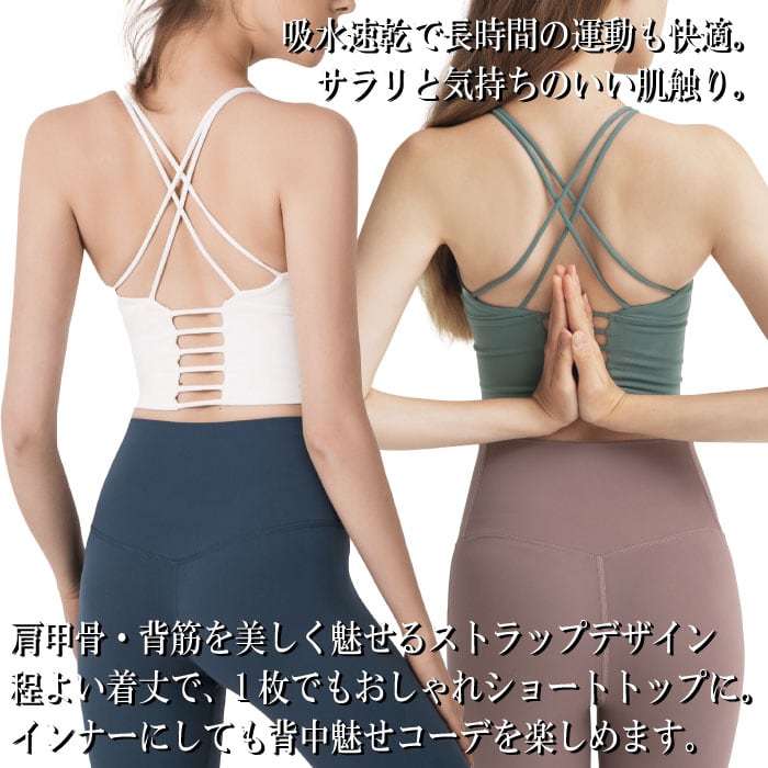 ヨガ ヨガウェア ブラトップ スポーツブラ トップス カップ付き 揺れない ノンワイヤー 背中美人 背中デザイン ショートトップ ランニング マラソン 美背中メイク デザイン ダンス フィットネス エアロビ ジム SW095T NEW