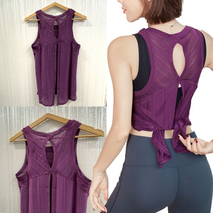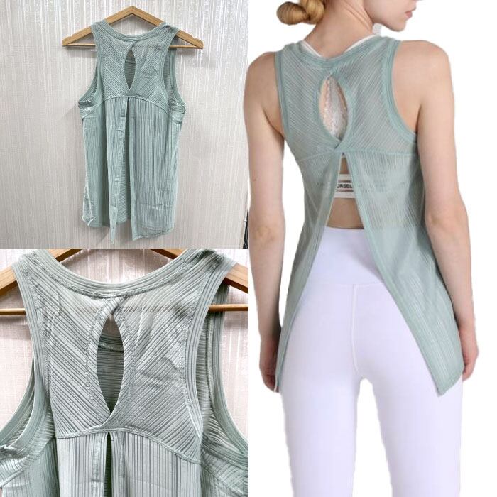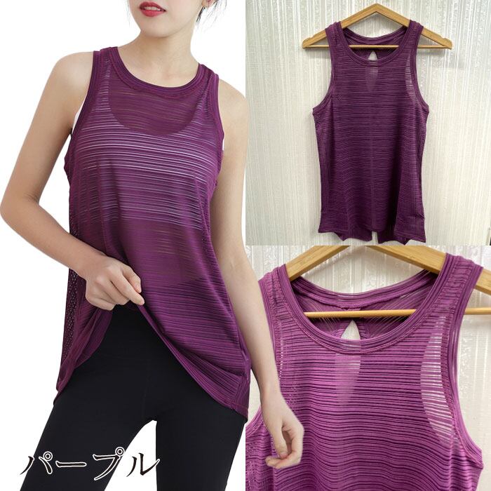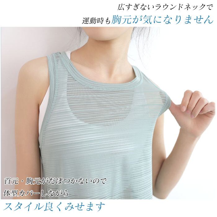 ヨガ タンクトップ トップス レディース スポーツ シースルー メッシュ フィットネス ジム モノトーン くすみカラー トレーニング sw420t