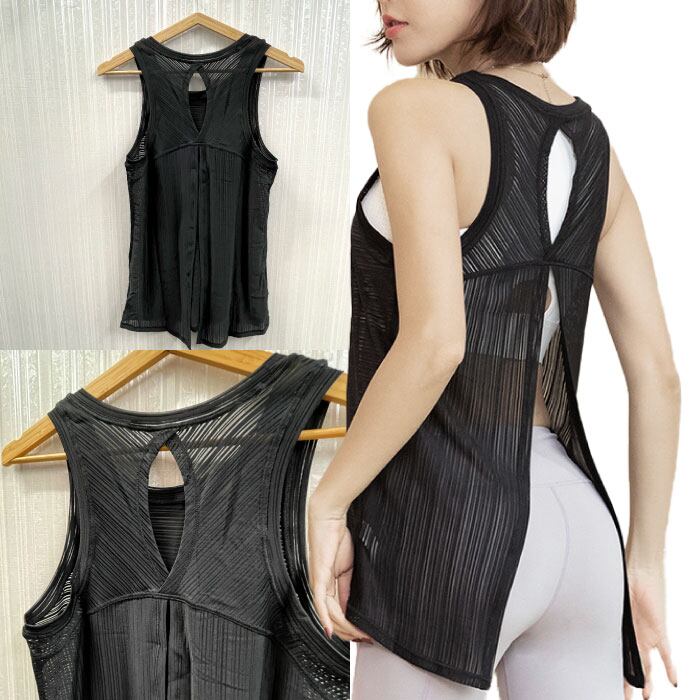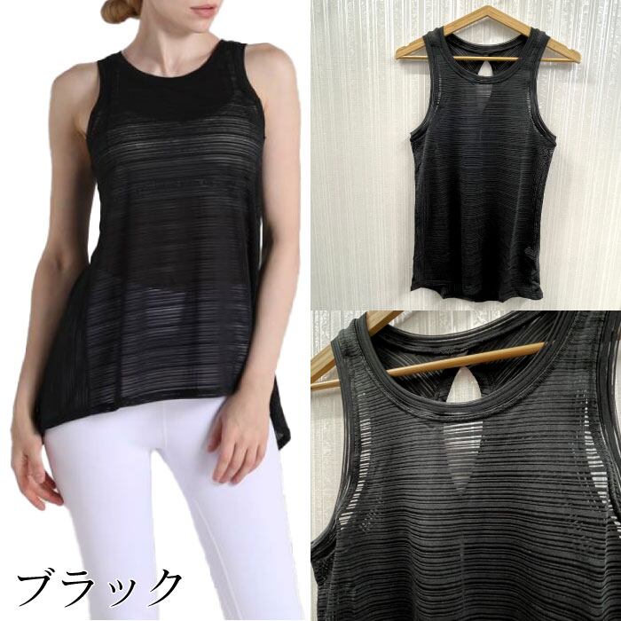 ヨガ タンクトップ トップス レディース スポーツ シースルー メッシュ フィットネス ジム モノトーン くすみカラー トレーニング デザインタンクトップ エアロビ エクササイズ ダンス 筋トレ シンプル セクシー 定番 ウェア ブラック ホワイト sw420t