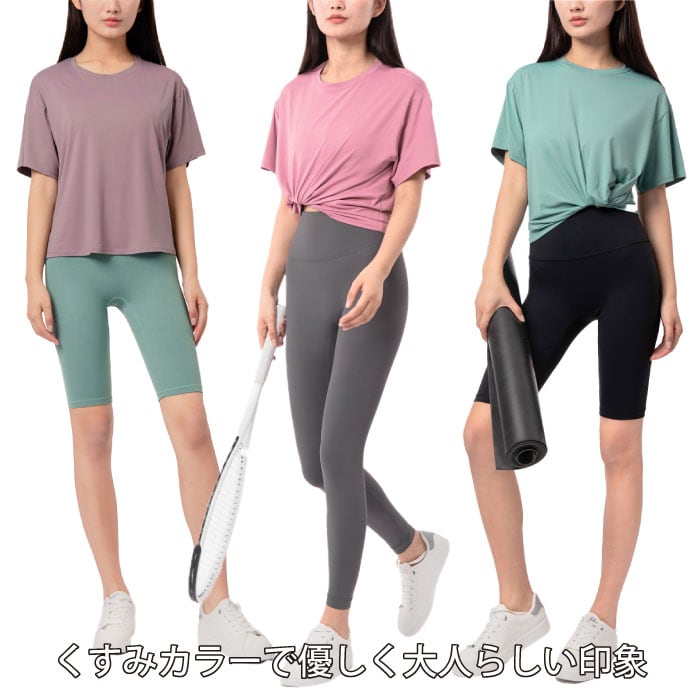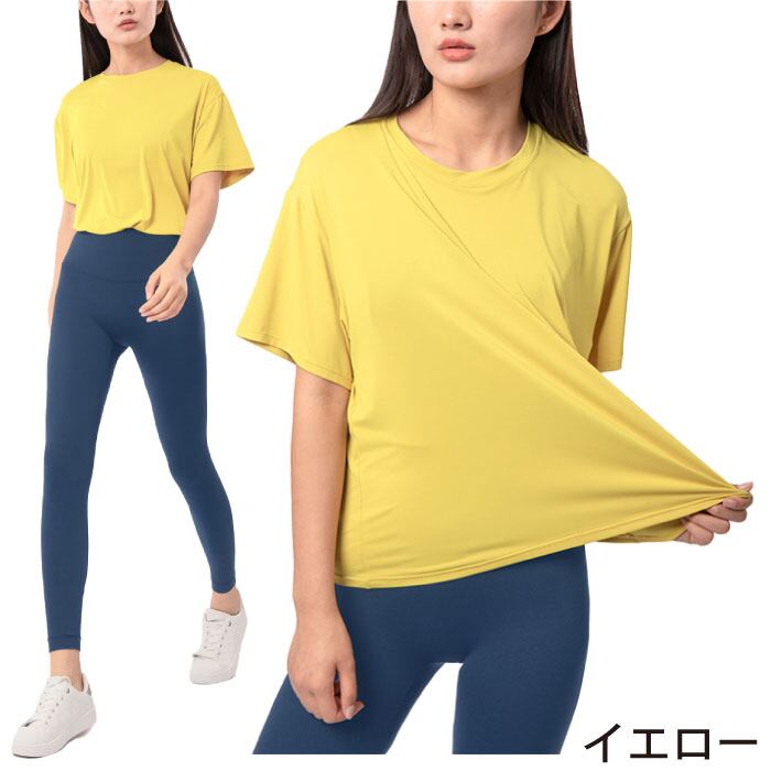 スポーツ tシャツ レディース 速乾 ヨガウェア 体型カバー くすみカラー スポーツウェア ルームウェア フィットネス エアロビクス セクシー sw427ts