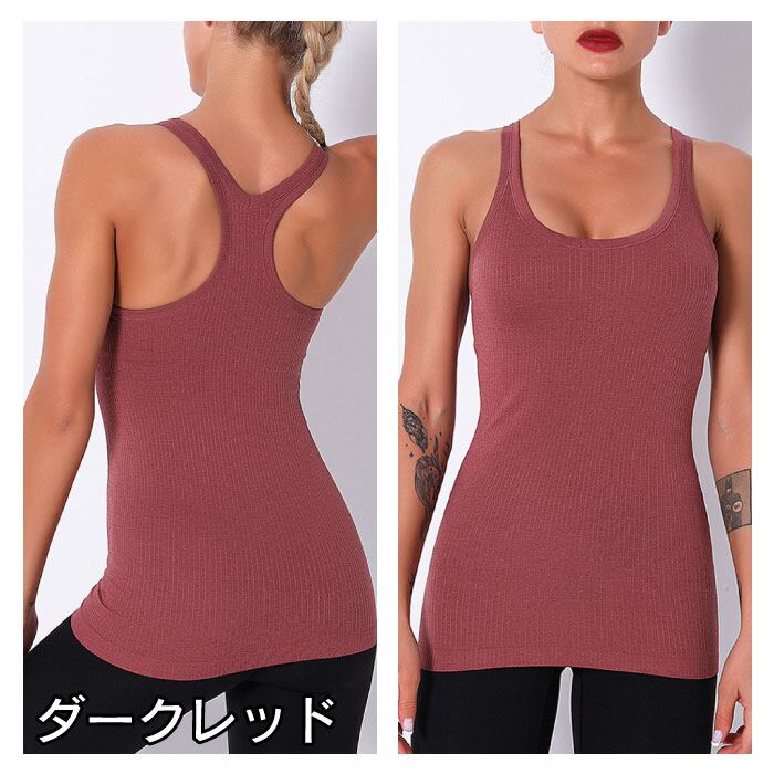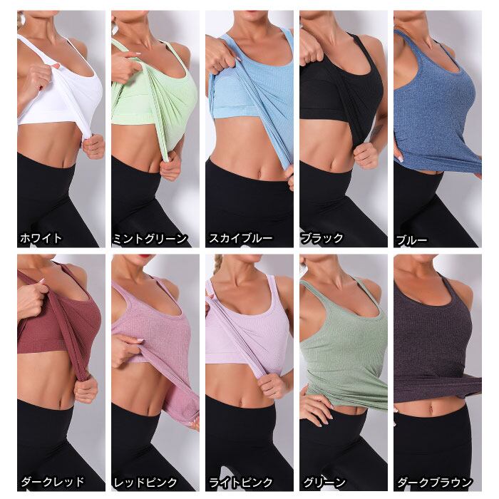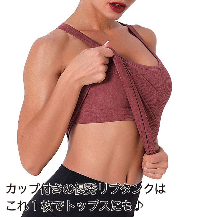 ヨガ レディース カップ付き タンクトップ ブラトップ ブラ ショートトップ トップス ヨガウェア スポーツ ルームウェア インナー リブ柄 ストレッチSW432T