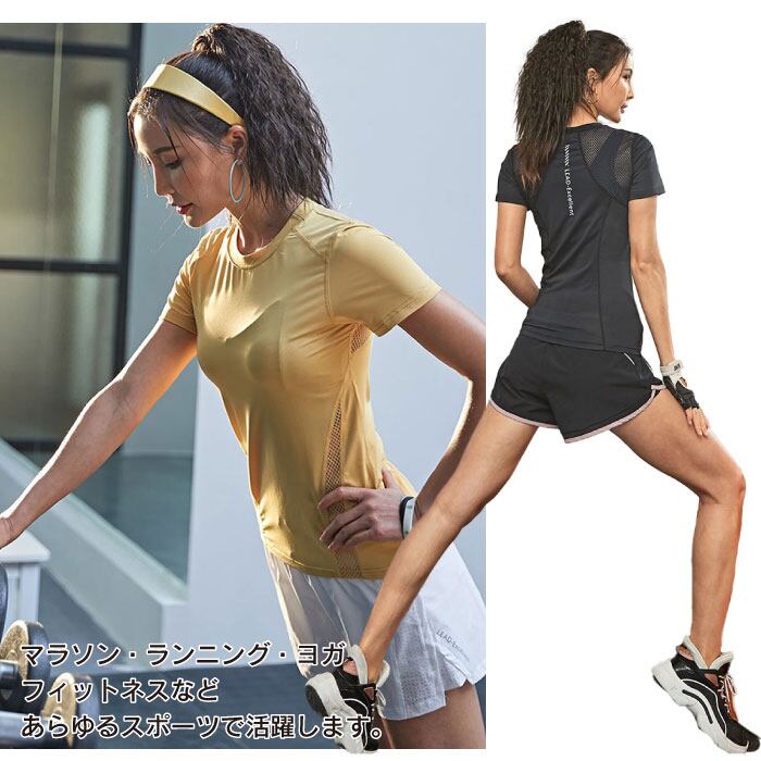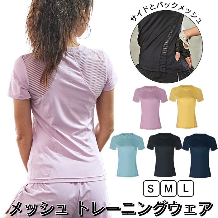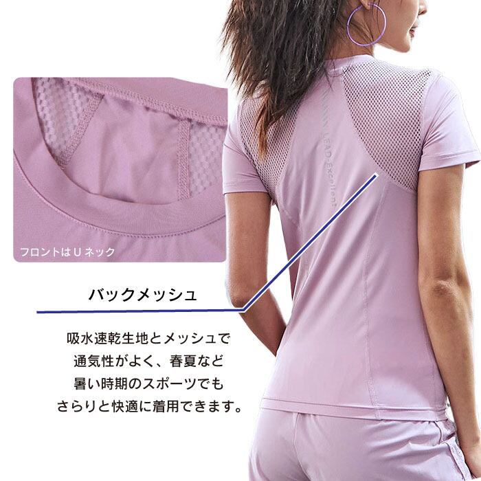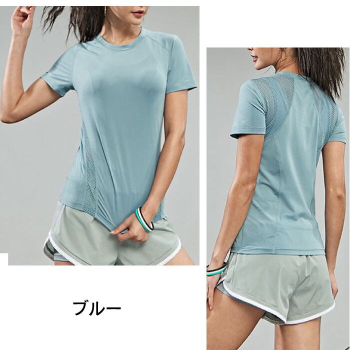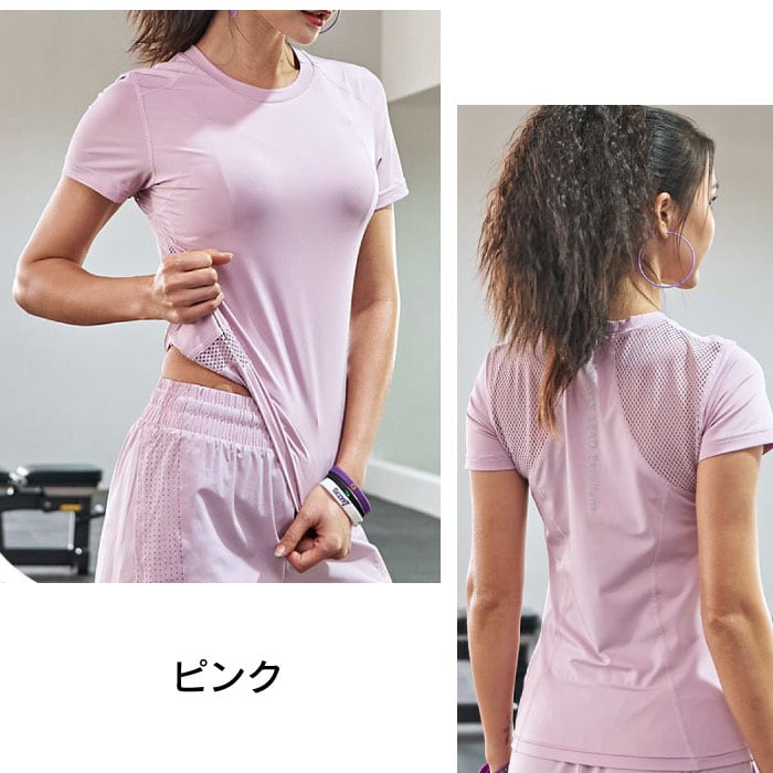 ヨガウェア レディース 半袖 Tシャツ メッシュ スポーツウェア 涼しい かわいい おしゃれ ホットヨガ 吸汗速乾 軽量 マラソン ランニング フィットネス SW455TS