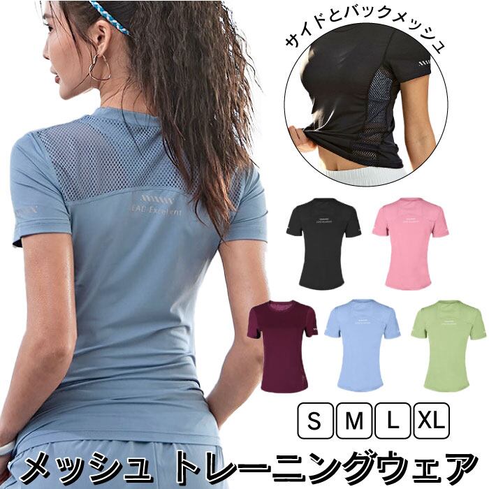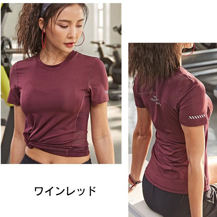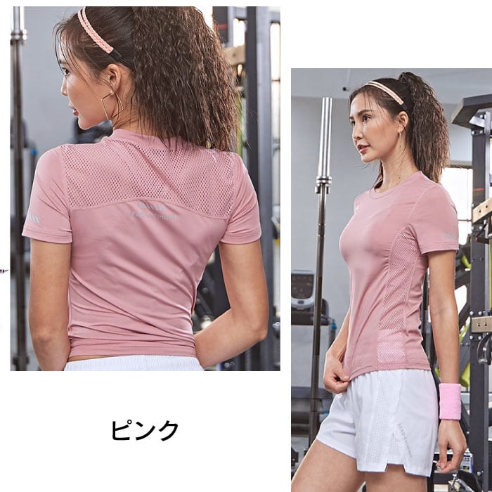 ヨガウェア レディース 半袖 Tシャツ メッシュ スポーツウェア 涼しい かわいい おしゃれ ホットヨガ 吸汗速乾 軽量 マラソン ランニング フィットネス SW457T
