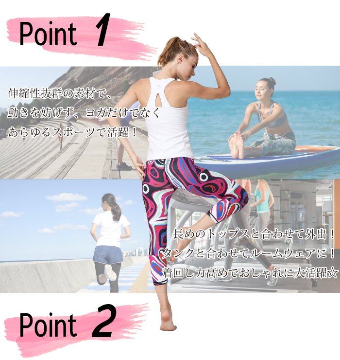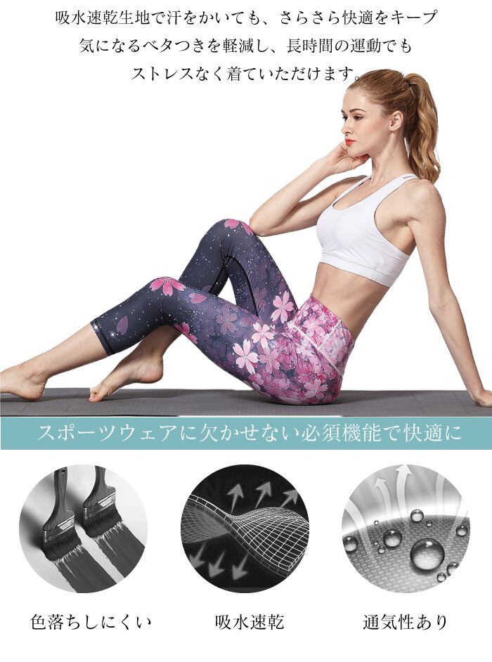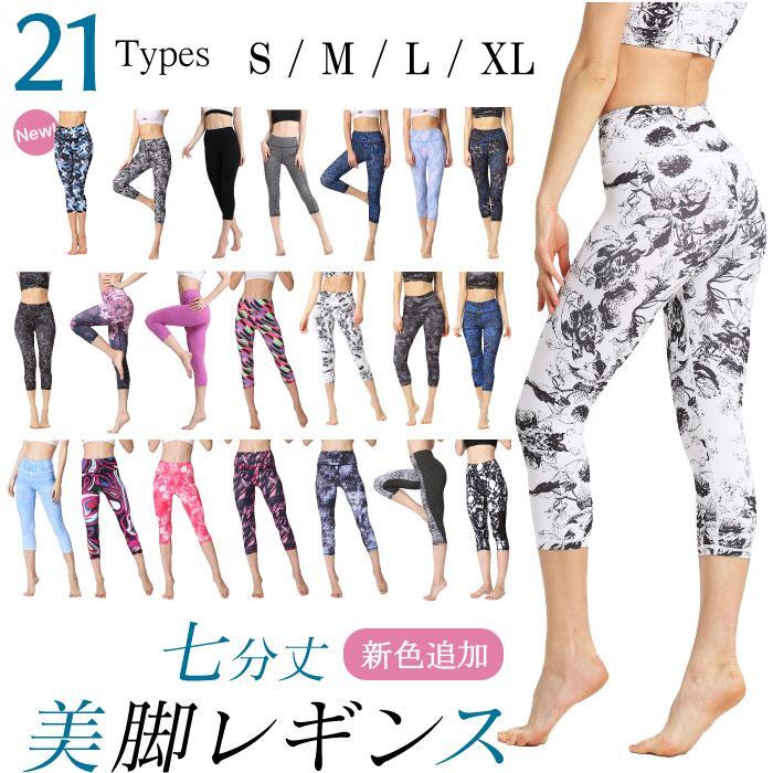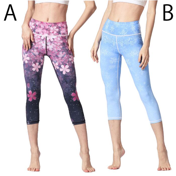 【新色追加】送料無料 ヨガ ピラティス レギンス 7分丈 ヨガウェア トレーニング ハイウエスト ヨガレギンス レディース 和柄 花柄 柄 ボタニカル かわいい おしゃれ ペールカラー ホワイト 美脚 ヨガパンツ スポーツ レディース 21柄 SW468S