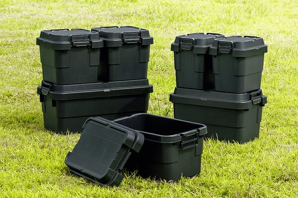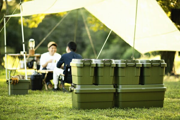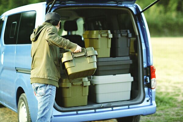 外使いでの使用感をアップデートトランクカーゴに新タイプが登場。トレー型でフラット形状のフタがテーブルとしても使え、積み重ねたときのずれも防止できる仕様となっております。また、フタにベルトガイドの溝を付けたことにより車のルーフキャリーなどに装着し固定できるようになります。