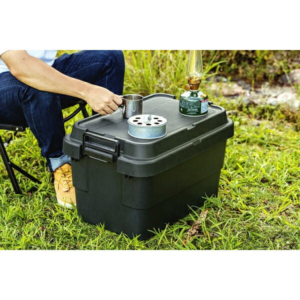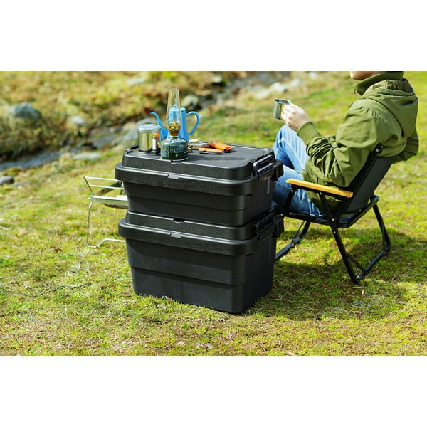 外使いでの使用感をアップデートトランクカーゴに新タイプが登場。トレー型でフラット形状のフタがテーブルとしても使え、積み重ねたときのずれも防止できる仕様となっております。また、フタにベルトガイドの溝を付けたことにより車のルーフキャリーなどに装着し固定できるようになります。