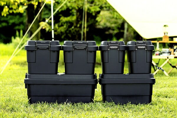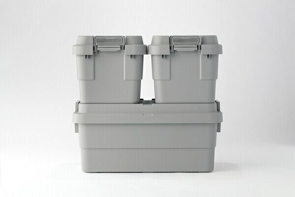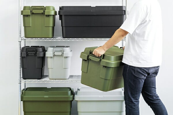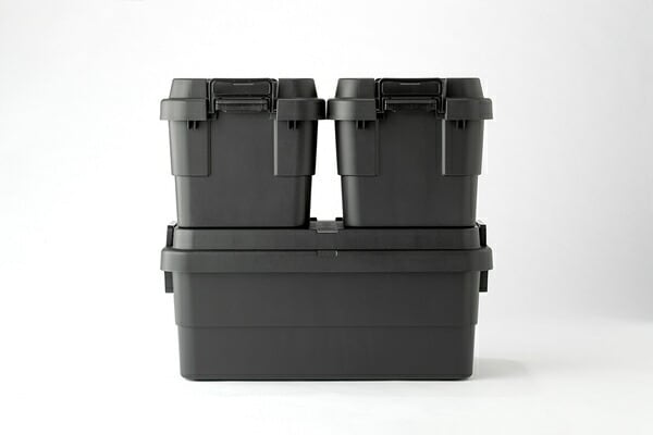外使いでの使用感をアップデートトランクカーゴに新タイプが登場。トレー型でフラット形状のフタがテーブルとしても使え、積み重ねたときのずれも防止できる仕様となっております。また、フタにベルトガイドの溝を付けたことにより車のルーフキャリーなどに装着し固定できるようになります。