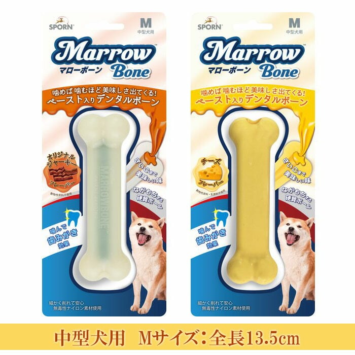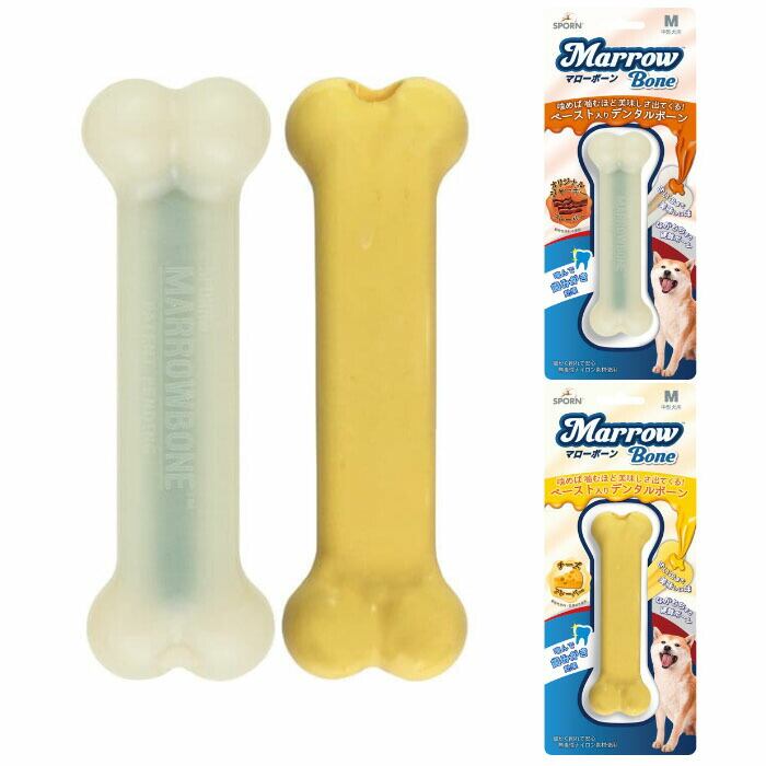 【イチオシ!】マローボーン Mサイズ チーズフレーバー ジャーキーフレーバー ペースト入り デンタルボーン 中型犬 犬 噛む おもちゃ 骨型 デンタルケア TK011G-M-ONE