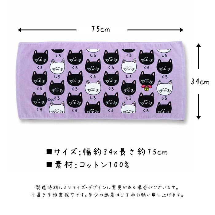 #送料無料 #おえかきさん #コットン100% #フェイスタオル #くろねこさんとしろねこさん #パープル #紫 #綿100% #スポーツタオル #手拭きタオル #ボディタオル #汗拭きタオル #プレゼント #ギフト #黒猫 #白猫 #猫 ねこ #HO-41-443 #TK034G-C