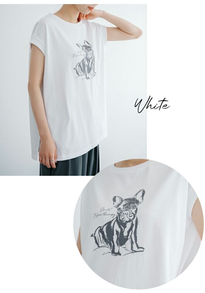 【売り尽くし】refinedworks リファインドワークス DOGプリントフレンチT フレンチブルドック フレンチTシャツ ノースリーブ 犬 フレンチブルドッグ フレブル ブヒ 犬グッズ プリントTシャツ レディース 女性用 TK038G