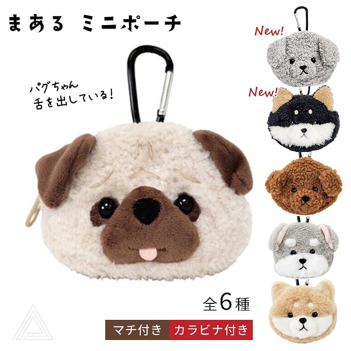 【新色追加】まある ミニポーチ 犬雑貨 バッグ ポーチ ペンケース airpodsケース トイプードル パグ シュナウザー シバイヌ クロシバ プードルグレー 柴犬 かわいい ふわふわ 犬顔ポーチ ポーチ コインケース キーケース 小物入れ 犬好きさん必見 プレゼント TK042G