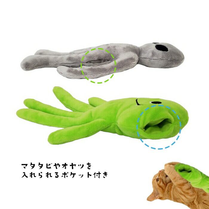 猫用 ける おもちゃ ねこ ネコ 猫 ぬいぐるみ 宇宙人 エイリアン ペット用品 猫用おもちゃ ペット 一人遊び ストレス解消 運動不足解消 猫のおもちゃ 噛むおもちゃ マタタビポケット付き 音が鳴る カラカラ ラトル TK043G