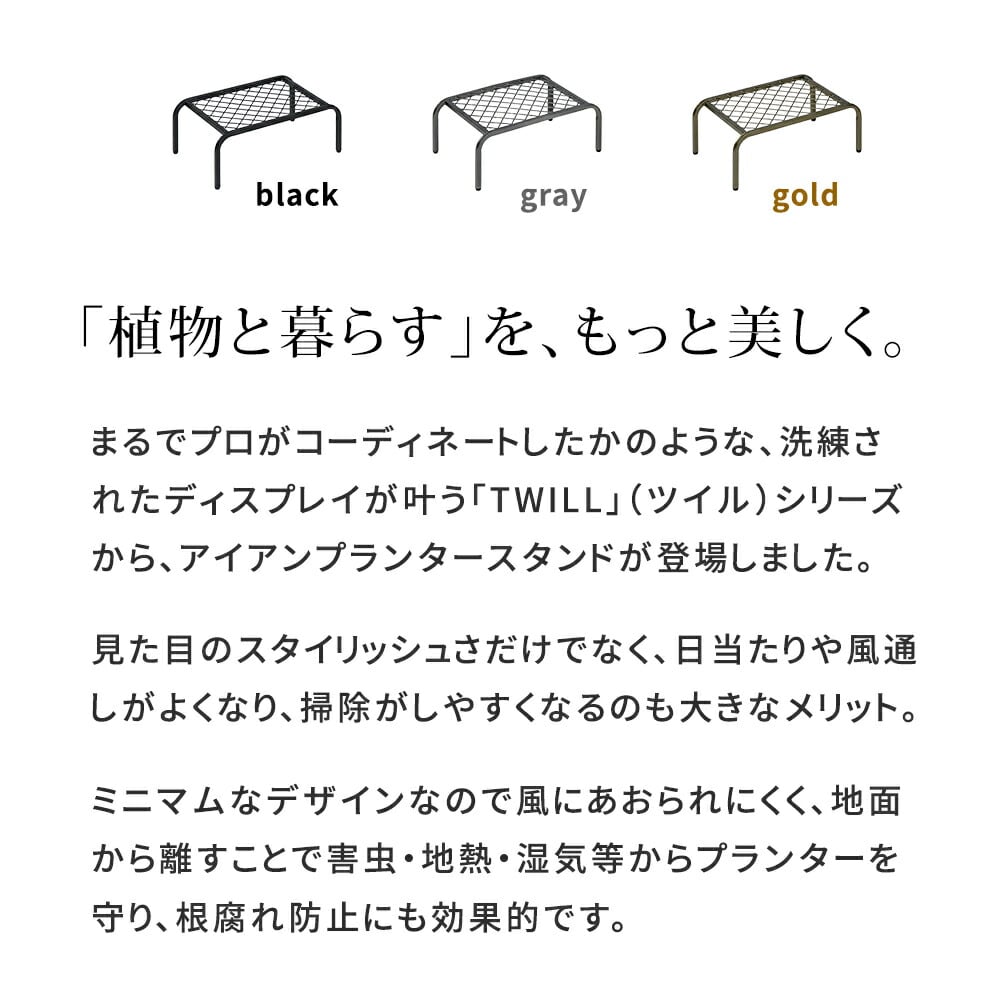 まるでプロがコーディネートしたかのような洗練されたディスレイが叶う「TWILL」(ツイル)シリーズから、アイアンプランタースタンドが登場しました。