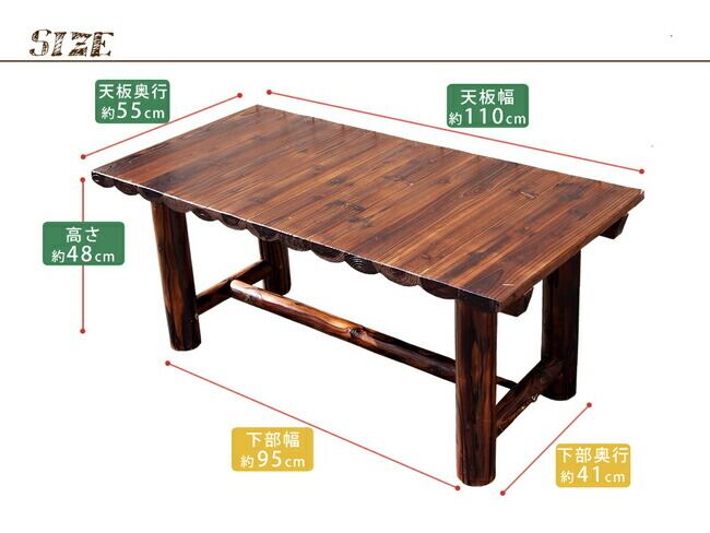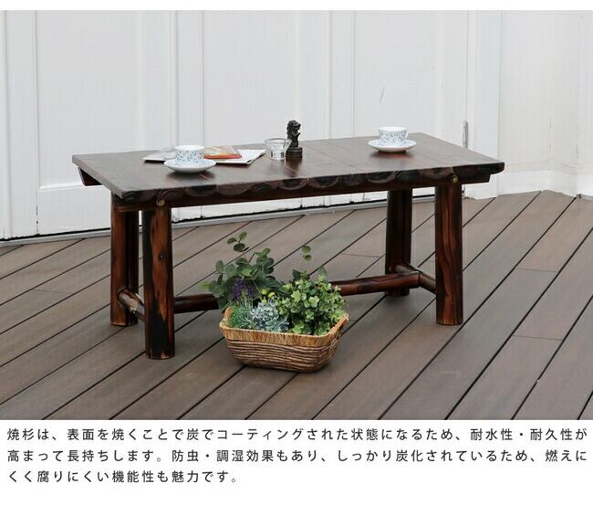 住まいスタイル 焼杉テーブル<br>【送料無料 簡単組立 天然木 木製 ガーデンテーブル ロー 丸太 車輪ベンチシリーズ 庭 公園 店舗 ショップ 什器 新築祝い 車輪 ログ カントリー 民芸 焼杉 古木調 テーブル アンティーク チェア ベンチ 縁台 和風 モダン】