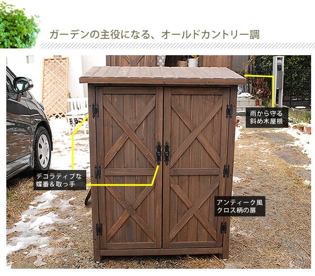 住まいスタイル オールドカントリー調ストッカー1200 ダークブラウン【送料無料 天然木 木製 収納 物置 倉庫 物入れ ウッドラック ランドリーラック ガーデニング雑貨 ポリタンク 扉付 おしゃれ 北欧 ナチュラル 掃除道具 庭 ベランダ 屋外】