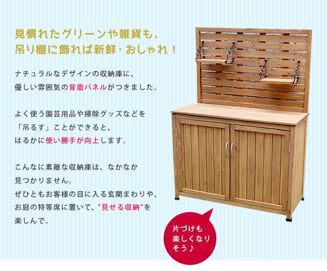 住まいスタイル 天然木 パネル付き収納庫100【送料無料 倉庫 屋外 室内 ガーデン コンテナ ベランダ 木製 作業棚 吊り棚】