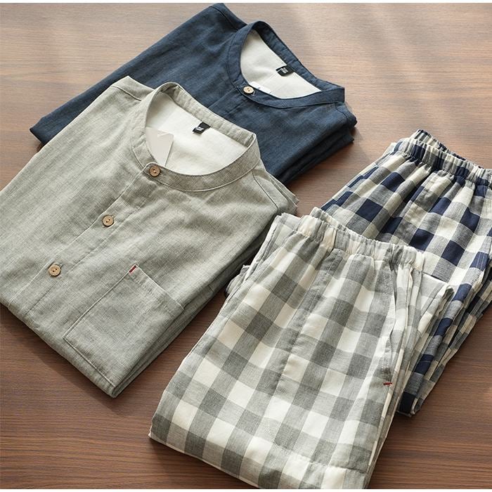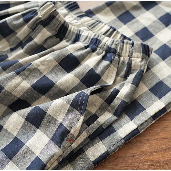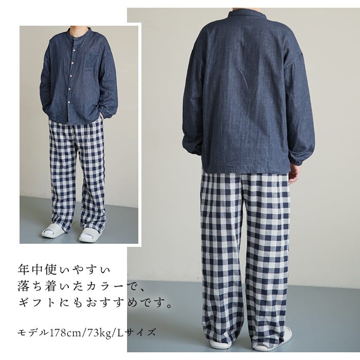 綿100% 二重ガーゼ パジャマ 上下セット ダブルガーゼ 前開き ルームウェア メンズ 春 夏 秋 無地 コットン 長ズボン ポケット付き ナイトウェア オールシーズン シンプル ガーゼ 薄手 軽い 快適 父の日 ギフト 贈り物 5685950 スイモク【水沐良品】