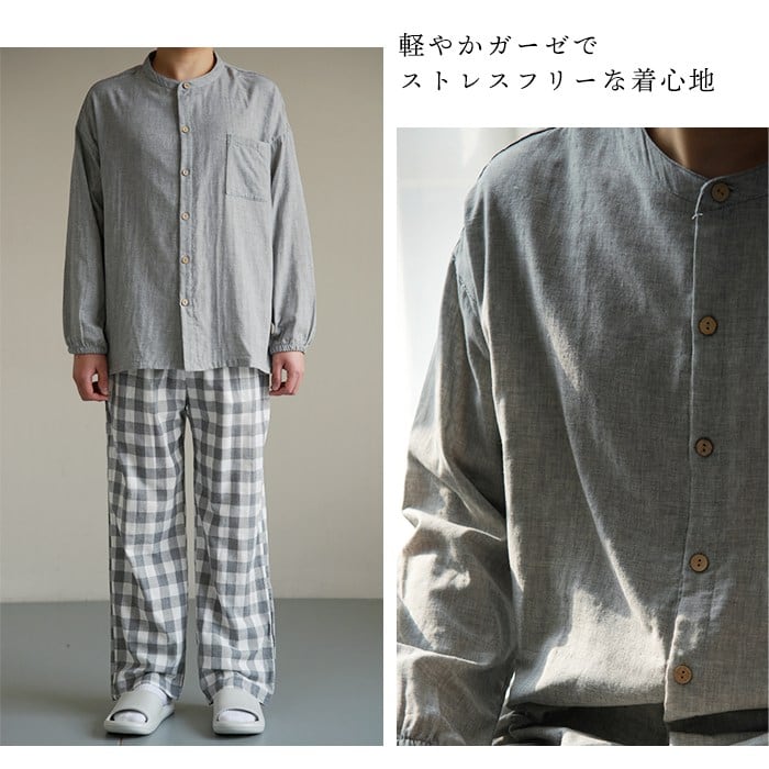 二重ガーゼ ルームウェア メンズ ガーゼ パジャマ 男性 コットン100% 上下セット 春 夏 秋 長袖 セットアップ 部屋着 綿100 ナイトウェア 男性用 吸水性 通気性 ギフト