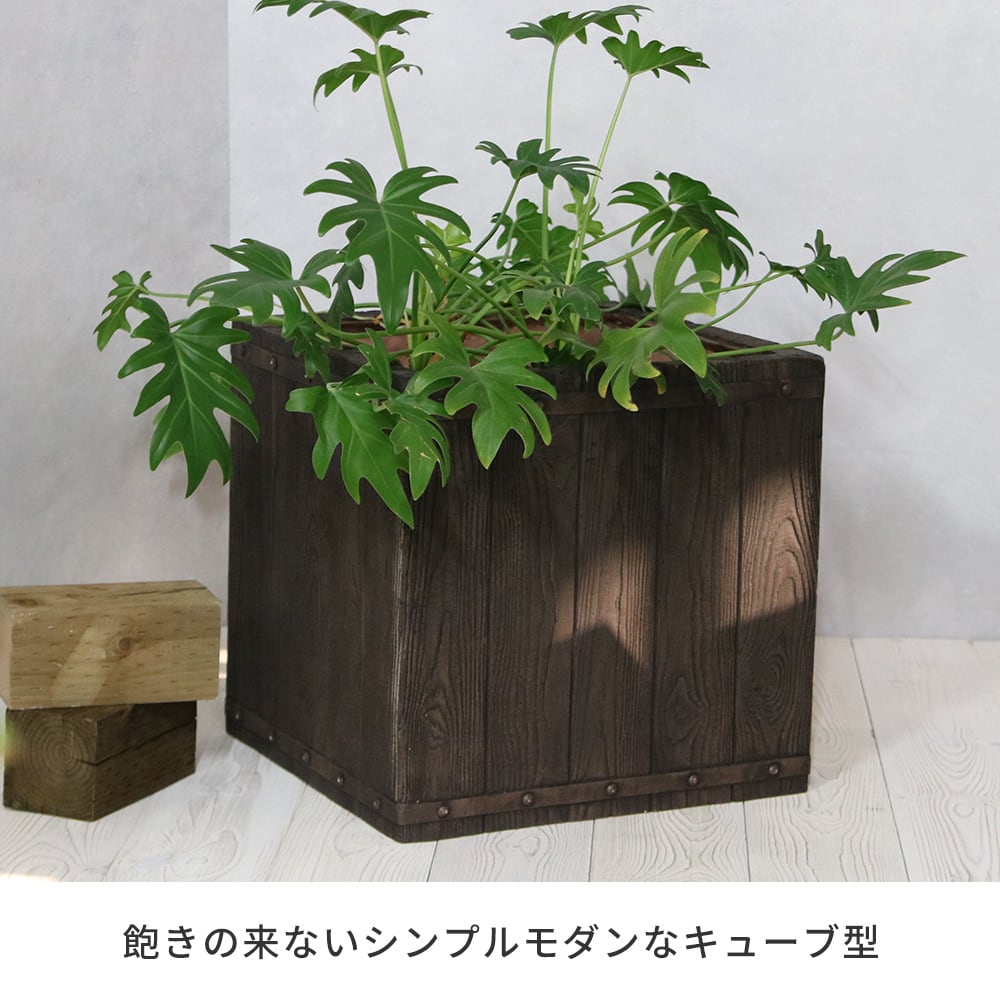 住まいスタイル 「FARBOR」 ファーバー 木調FRPプランター 幅40 (角型) E002-CU400<br> 奥行40 高さ40 植木鉢 プランター 木製 ウッド 軽量 大型 37L カバー 庭 ガーデン インテリア 室内 店舗 おしゃれ
