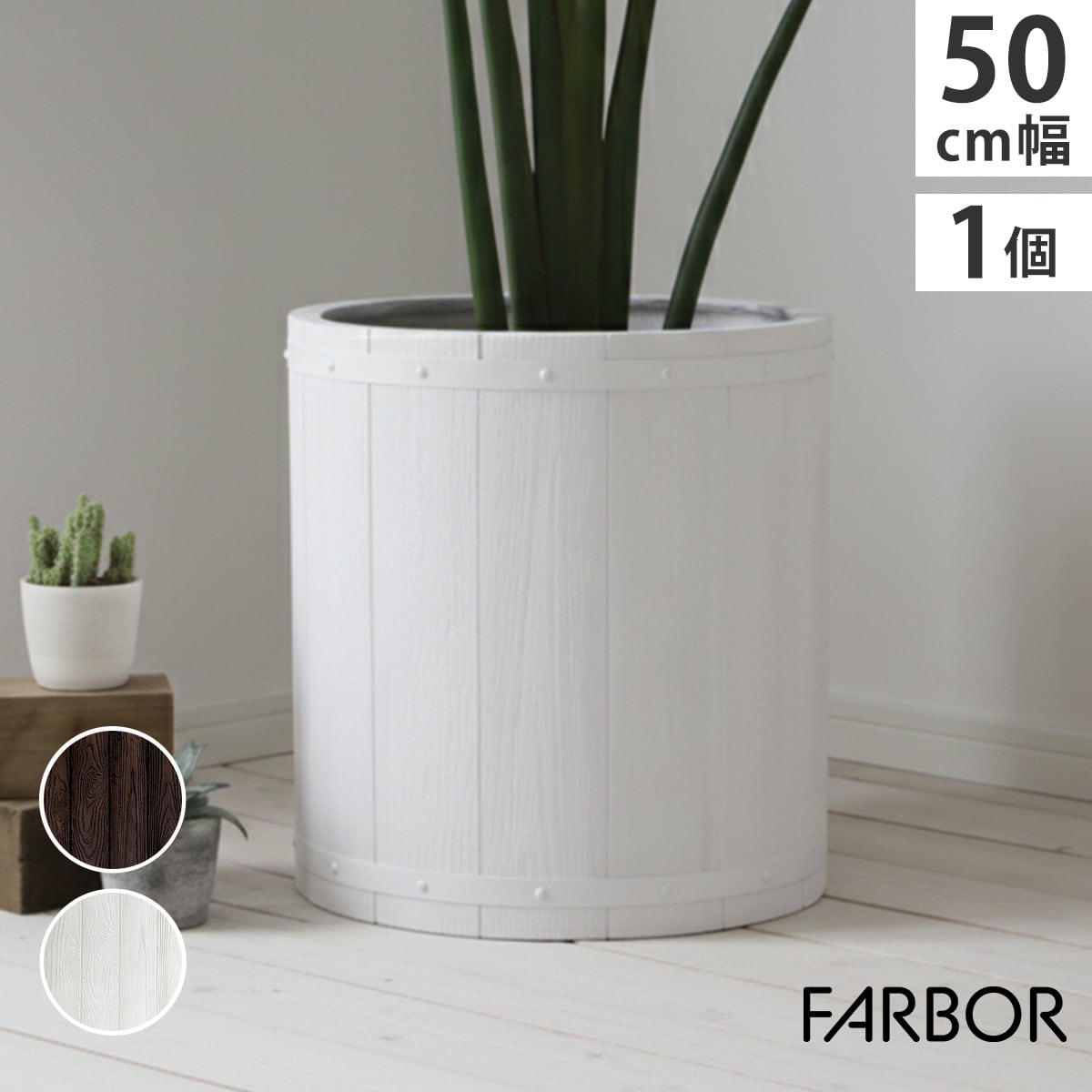 「FARBOR」 ファーバー 木調FRPプランター 幅50 (丸型)