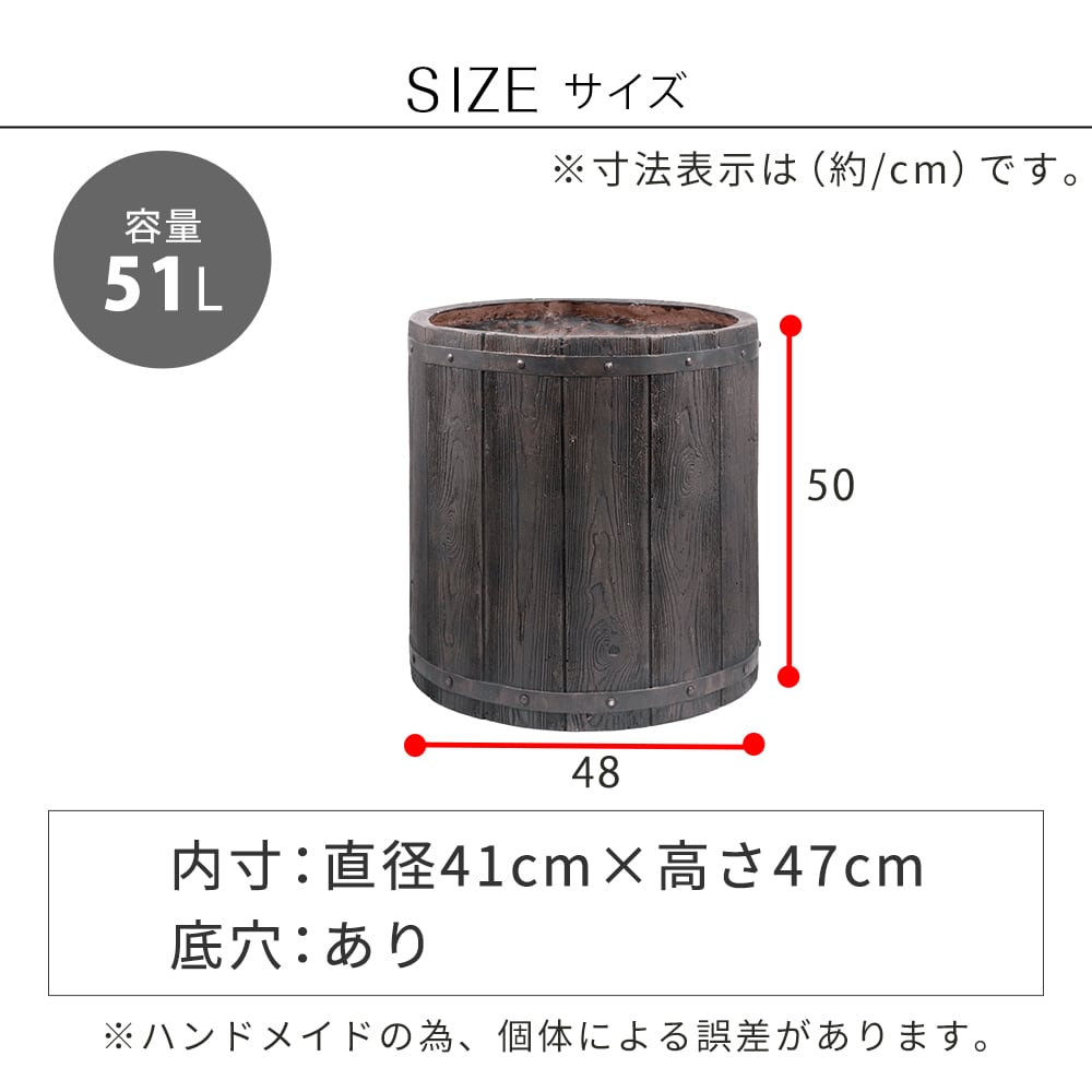 住まいスタイル 「FARBOR」 ファーバー 木調FRPプランター 幅50 (丸型) E002-EN500<br> 直径48 高さ50 植木鉢 プランター 木製 ウッド 軽量 大型 51L カバー 庭 ガーデン インテリア 室内 店舗 おしゃれ