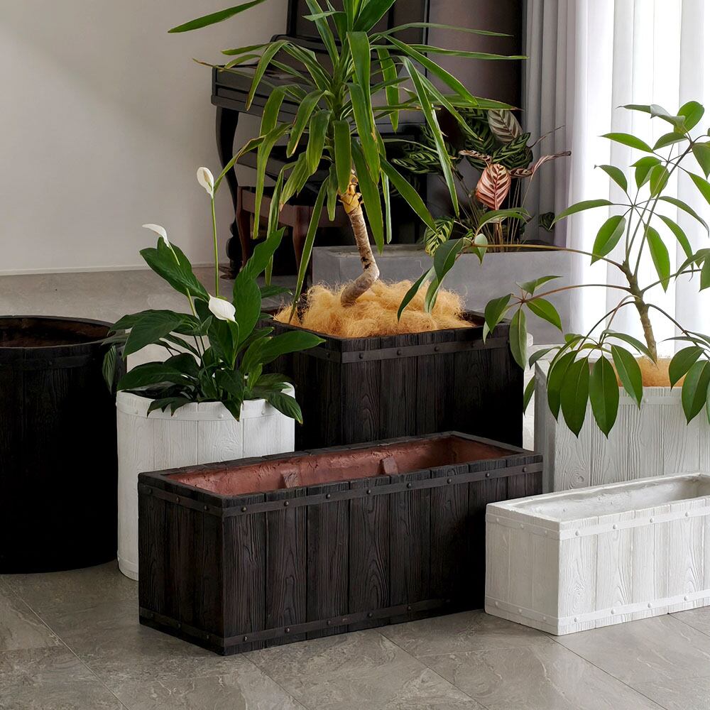 住まいスタイル 「FARBOR」 ファーバー 木調FRPプランター 幅60・80 (長角) 大小2個セット E002-RE6080S<br> 植木鉢 プランター 木製 ウッド 軽量 大型 16L 44L カバー 庭 ガーデン インテリア 室内 店舗 おしゃれ