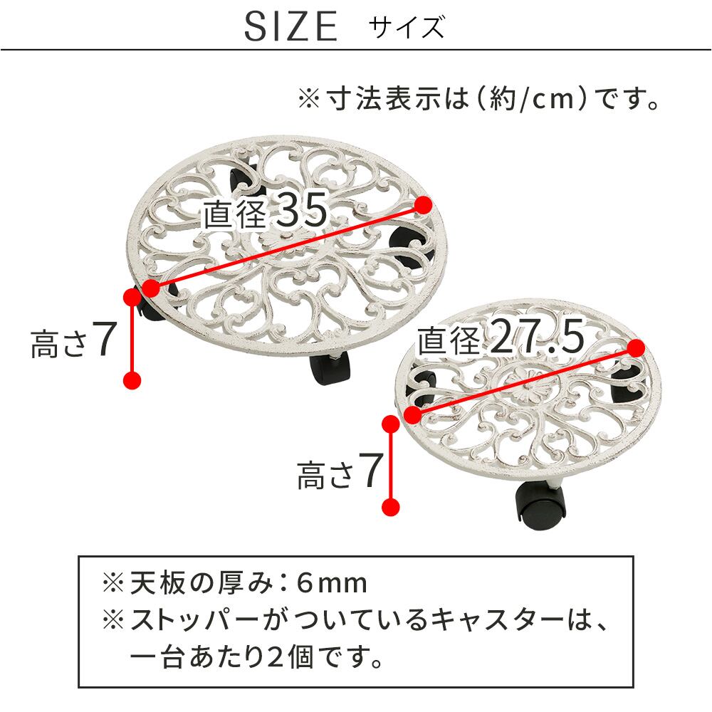 アイアン鋳物ならではのずっしりとした重みで安定感があり、大変しっかりした作りで実用的です。さらに、キャスター付きなのでお掃除も簡単です。